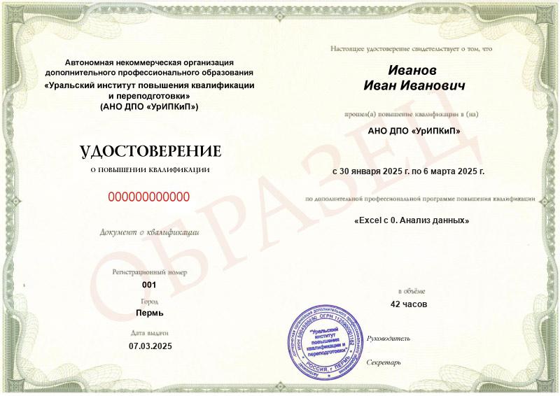 Учебный план программы повышения квалификации «Exсel с 0. Анализ данных»