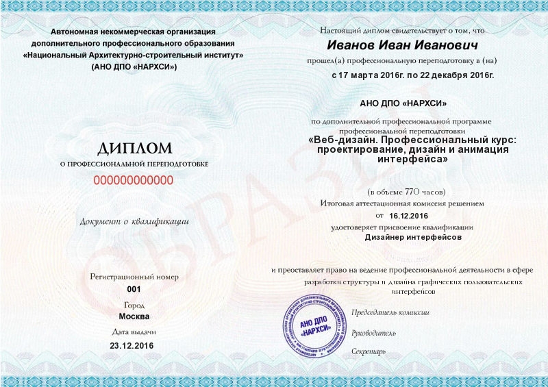 - Диплом московской академии дизайн-профессий Pentaschool.